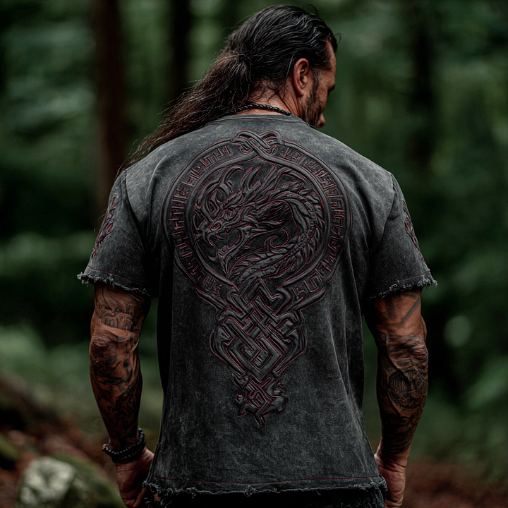 Men's Retro Viking Dragon Rune Loose Washed T-shirt