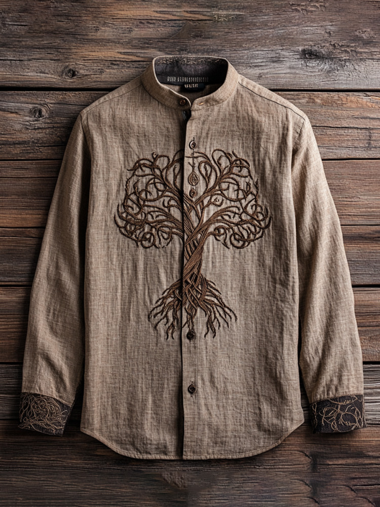 Men's Viking Life Of Tree Celtic Knot Art Linen Shirt