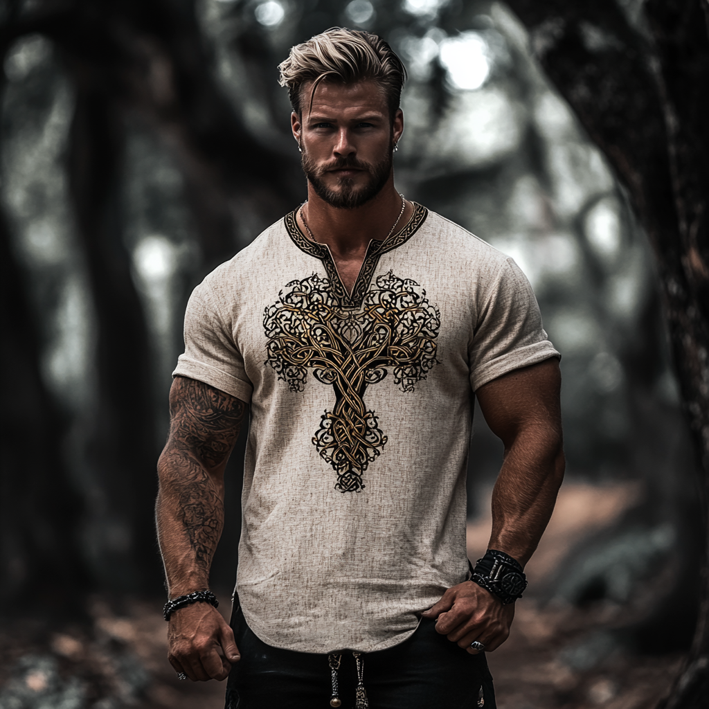 Men's Viking Tree Of Life Celtic Knot Art Linen Blend Shirt