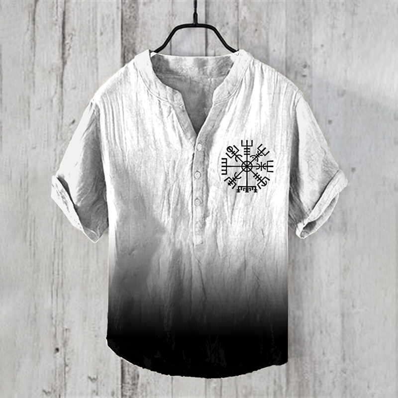 Viking Ethnic Gradient Graphic Art Linen Blend Shirt