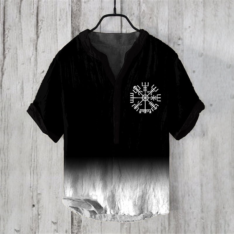 Viking Gradient Ethnic Graphic Art Linen Blend Shirt